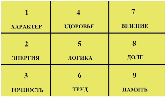Квадрат 1 определяет характер человека.