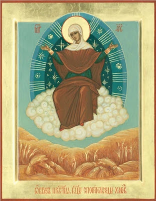 О Пресвятая Дево Богородице, Премилостивая Владычице, Царице Небесе и земли, всякаго дома и семейства христианскаго Благоустроительнице, труждающихся благословение, нуждающихся неистощимое богатство, сирых и вдовиц и всех людей Кормительнице! Питательнице наша, рождшая Питателя Вселенныя и Спорительнице хлебов наших: Ты, Владычице, ниспосылаеши Твое Матернее благословение градом нашим, селам и нивам и коемуждо дому, на Тя упование имущему. Темже с благоговейным трепетом и сокрушенным сердцем смиренно молим Тя: буди и нам, грешным и недостойным рабом Твоим, мудрая Домостроительнице, житие наше добре устрояющая. Всякое же сообщество, всякий дом и семейство во благочестии и православии, единомыслии, послушании и довольстве соблюди. Нищия и неимущия пропитай, старость поддержи, младенцы воспитай, всех вразуми преискренне взывати ко Господу: “Хлеб наш насущный даждь нам днесь”. Сохрани, Пречистая Мати, люди Твоя от всякия нужды, болезни, глада, губительства, града, огня, от всякаго злаго обстояния и Всякаго нестроения. Обители нашей (веси), домам и семействам и всякой души христианстей и всей стране нашей исходатайствуй мир и велию милость, да славим Тя, Премилостивую Питательницу и Кормительницу нашу, ныне и присно, и во веки веков. Аминь.