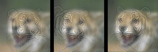 Вы одинаково видите три изображения тигра? Присмотритесь и уведите, что одинаковые изображения переходят в разные выражения.