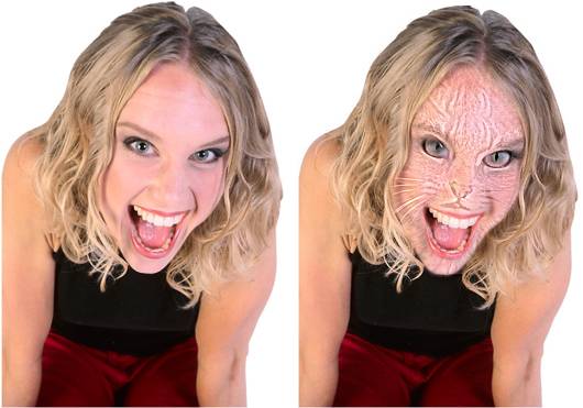 А это? Когда вы приближаетесь к этим двум, казалось бы, идентичным фотографиям, лицо женщины справа должно превращаться в кошку.