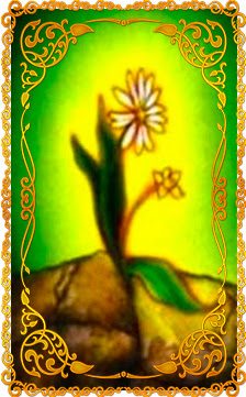 На выбранной карте изображён цветок. В стремлении к солнцу он прорастает сквозь камни и твёрдую неплодородную почву. Кажется, что это маленький и беззащитный цветок находится в самых неблагоприятных условиях, но это не мешает ему прорасти, раскрыться и осветить окружающий мир сиянием своей красоты.