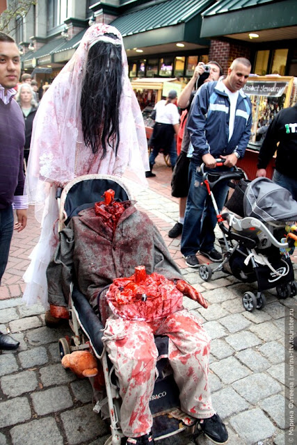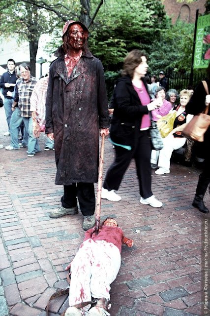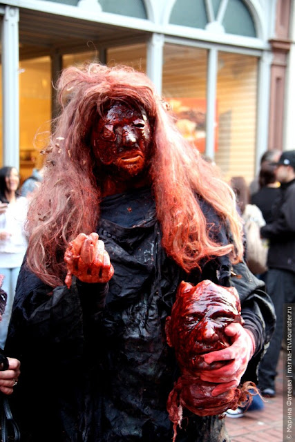 Здесь можно сфотографироваться с графом дракулой, пожать руку монстру Франкенштейна, найти голову обезглавленной женщины — продолжать можно до бесконечности, каких только «ряженных» там нет. При чем актеры, ни на секунду не выходят из образа, издают душераздирающие звуки, очень правдоподобно изображают мертвых, одним словом веселят народ, как могут.