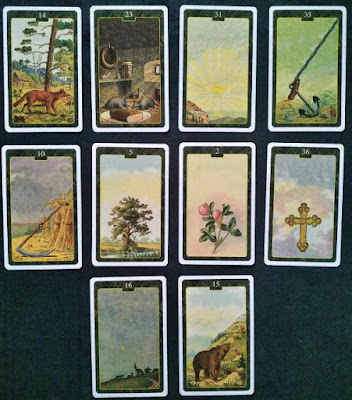 Нижний ряд: первая карта- Коса(10), вторая- Крест(36).