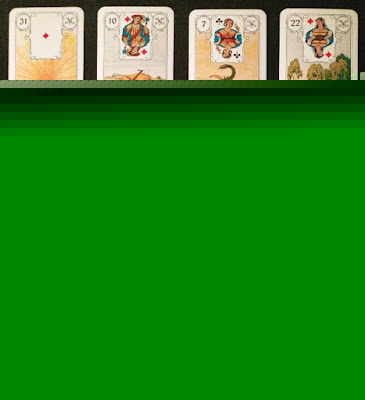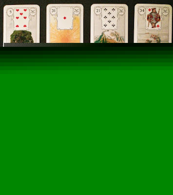 Верхний ряд: первая карта- Солнце(31), вторая- Коса(10), третья- Змея(7), четвёртая- Развилка(22).
