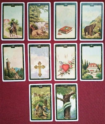 Средний ряд: первая карта- Башня(19), вторая-Крест(36), третья- Сердце(24), четвёртая- Дом(4).