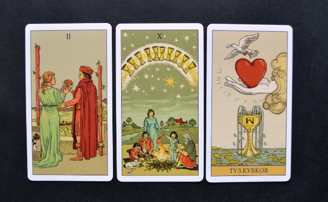 Это гадание поможет внести ясность в отношение вашего партнера к вам. Сосредоточьтесь и выберите одну карту. Каждую я дополню еще двумя арканами. В результе вы узнаете чувства, мысли и действия загаданного человека.