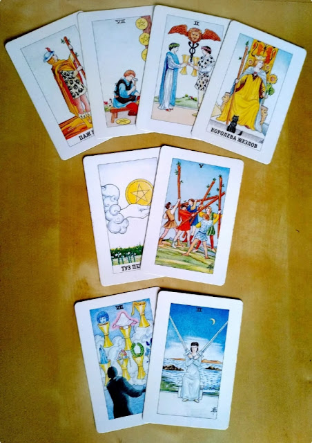 Вторая карта сообщает что у вас будет происходить в личных отношениях, любви. Может вспыхнуть конфликт, пятёрка жезлов практически всегда указывает на недомолвки и ссоры.