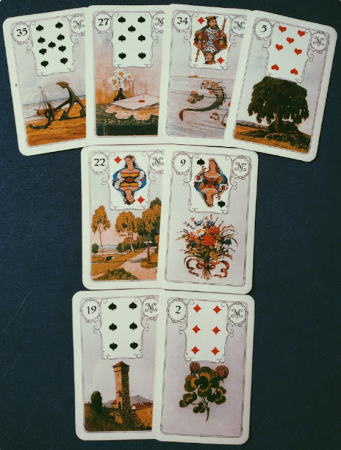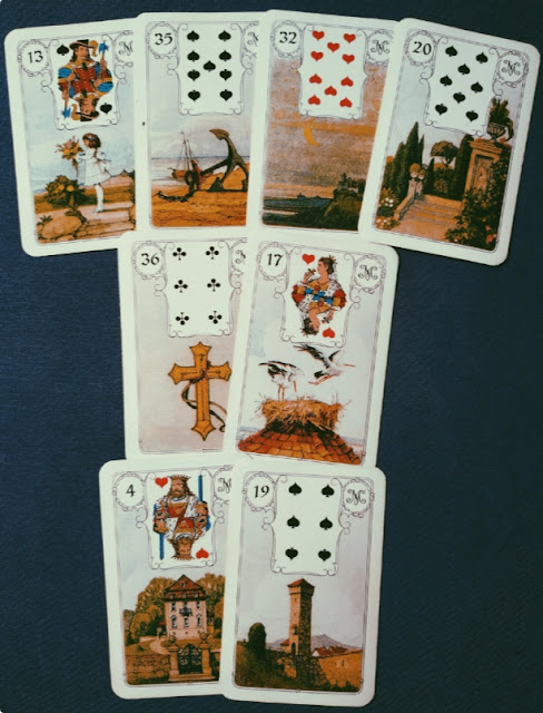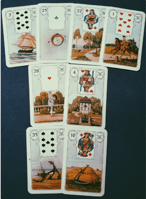 Первая карта показывает что ожидает в делах, работе, учёбе. Карта Корабль в этом положении часто указывает на командировку. Для тех, кто занят в торговле, обещает весьма продуктивную неделю. Если речь идёт о новой работе, то данная карта указывает на то, что вы там проработаете долго.