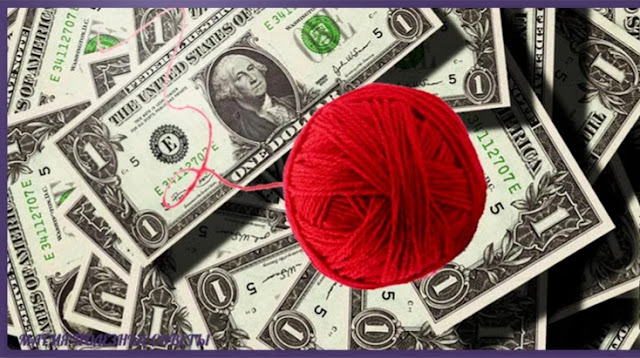 Теперь берем моток красных ниток и просто обматываем наш шарик получившийся, обматываем так, чтобы не было видно купюр совсем. Конец нитки красной заправляем внутрь клубка. Все денежный амулет готов.