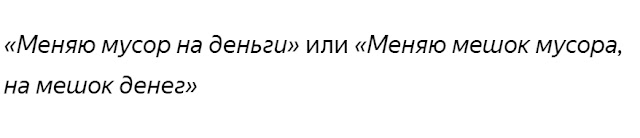 «Меняю старое пальто, на новую норковую шубу» или «Меняю старые туфли, на новую машину».