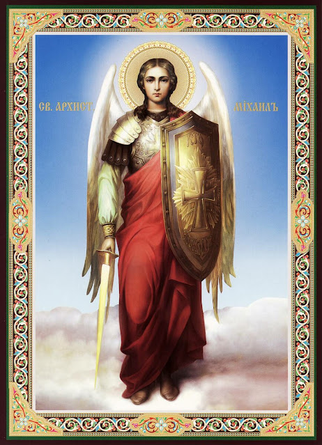 “Воеводо серафимов, полководче рати небесной, ныне стань мне защитником и оборонником в жизни. Ворогов не подпусти, лиходеев накажи, огненным мечом от меня лихоту отгони. Прошу именем Господа Христа,во славу Бога Отца и святости Святого Духа. На ныне и на века. Аминь, аминь, аминь”.